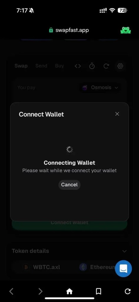 My WBTC was issued by Axelar, which, as Gravity Bridge framed, “is the only correct next destination”, whatever the fuck it was supposed to mean. I was starting to get angry.